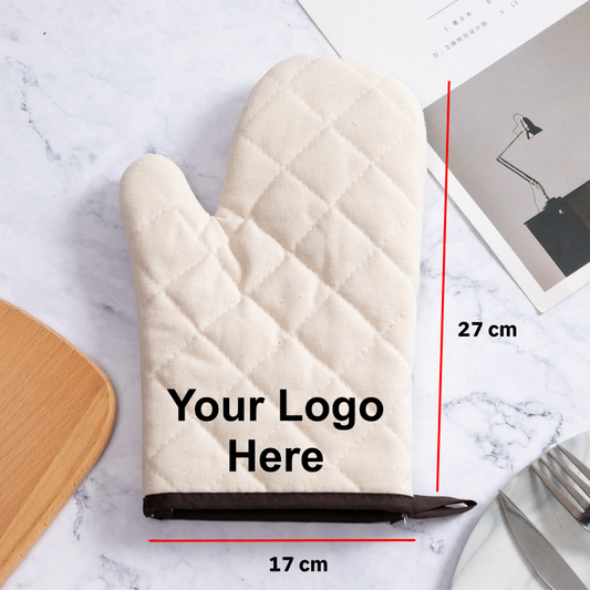 We offer two styles—silicone oven mitts with a logo imprint area and quilted cotton oven mitts with full customization options.