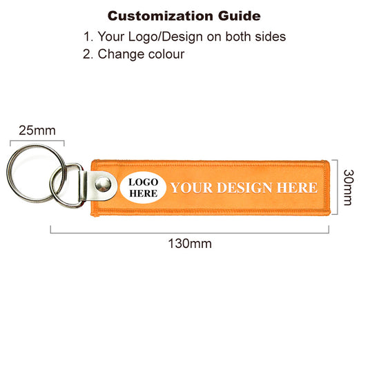 Pick your preferred flight tag type—embroidered, printed, or woven. Select colors, shapes, and keyring styles that best represent your brand or message.