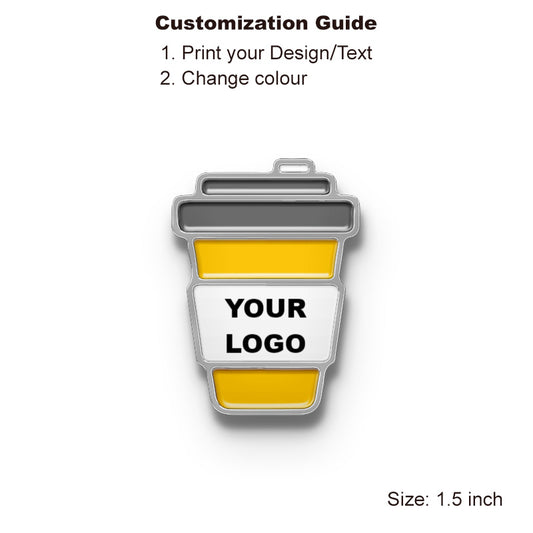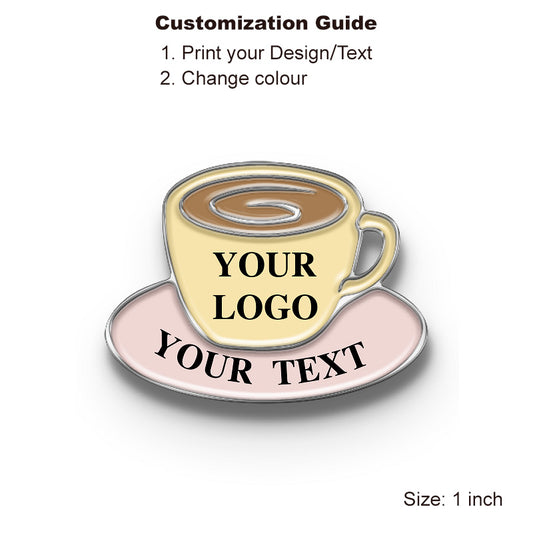 Coffee Pins with Custom Logo & Text - Coffee Cup