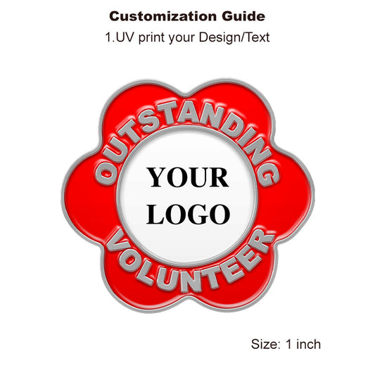 Volunteer Pin with Custom Round Logo Ribbon Text