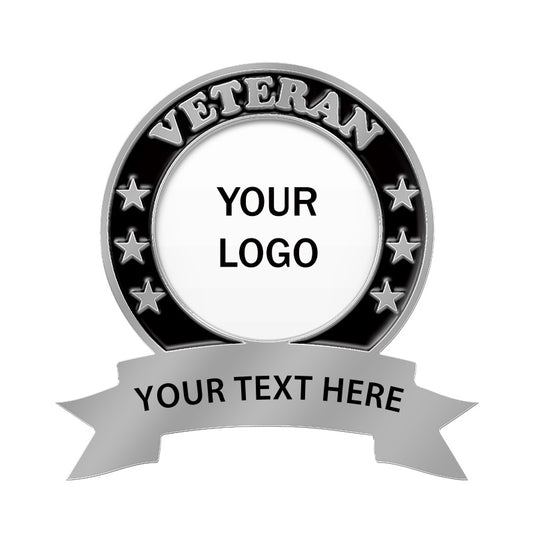 Browse our selection of veteran pins and choose your preferred design. Share your custom logo or text.